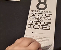 Some protesters handed out pamphlets to job seekers who queued up at legitimate (that is, ICE-free) employer tables:
