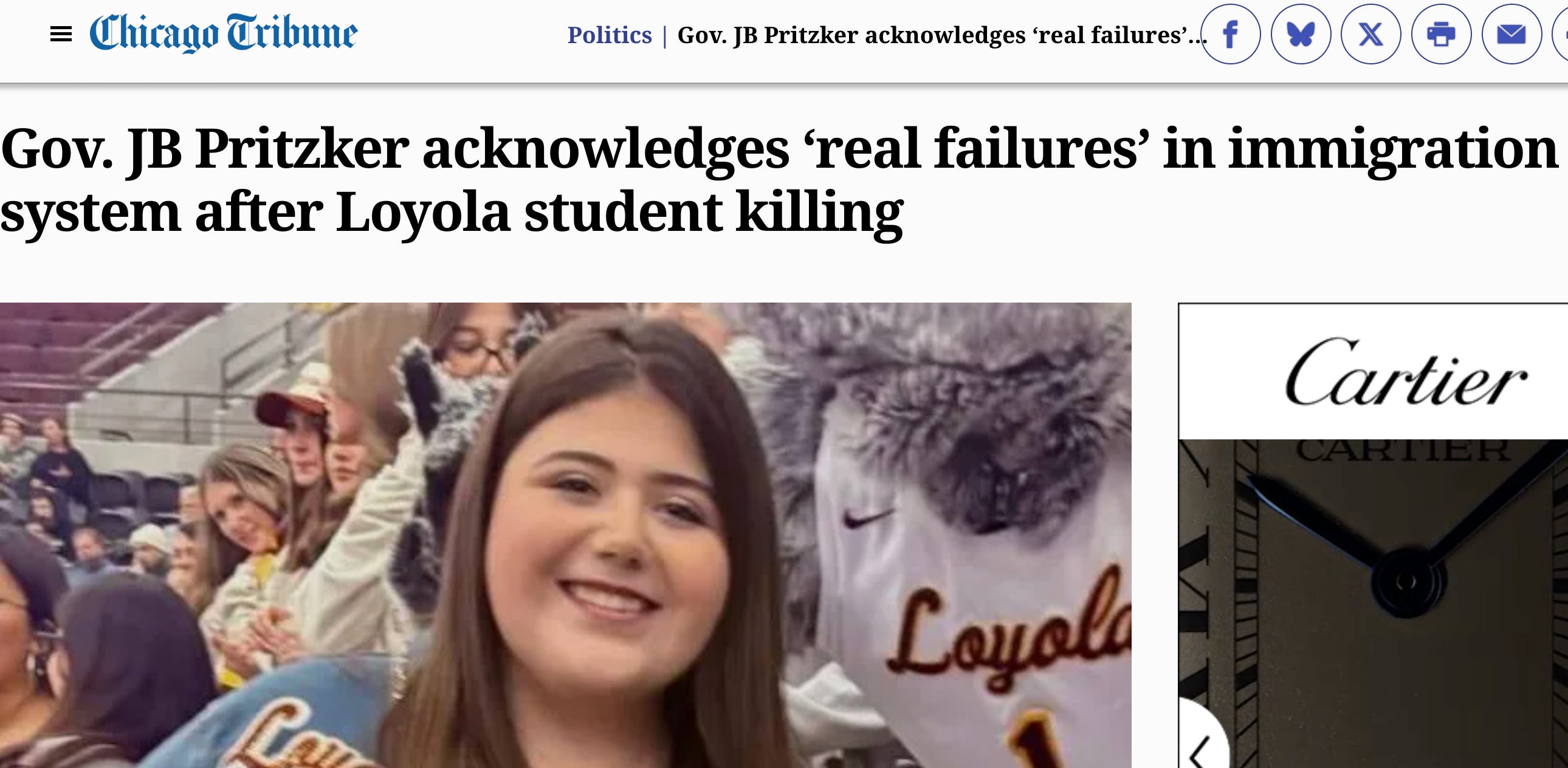 In this specific case, the headline gives the reader the impression that Illinois Governor JB Pritzker is bending the knee to the Trump regime over the tragic murder of a young Loyola student on Chicago’s lakefront at the hands of a Venezuelan immigrant.