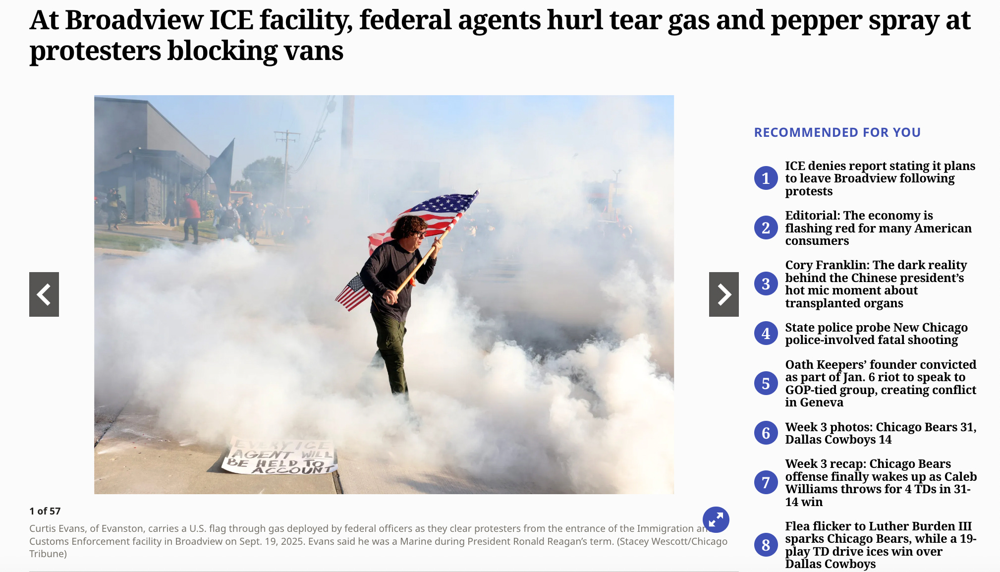 Sometimes, I do, too. The photographs by Chicago Tribune photojournalist Stacey Wescott covering the ICEstapo protests in the Chicago suburb of Broadview fall into that category.