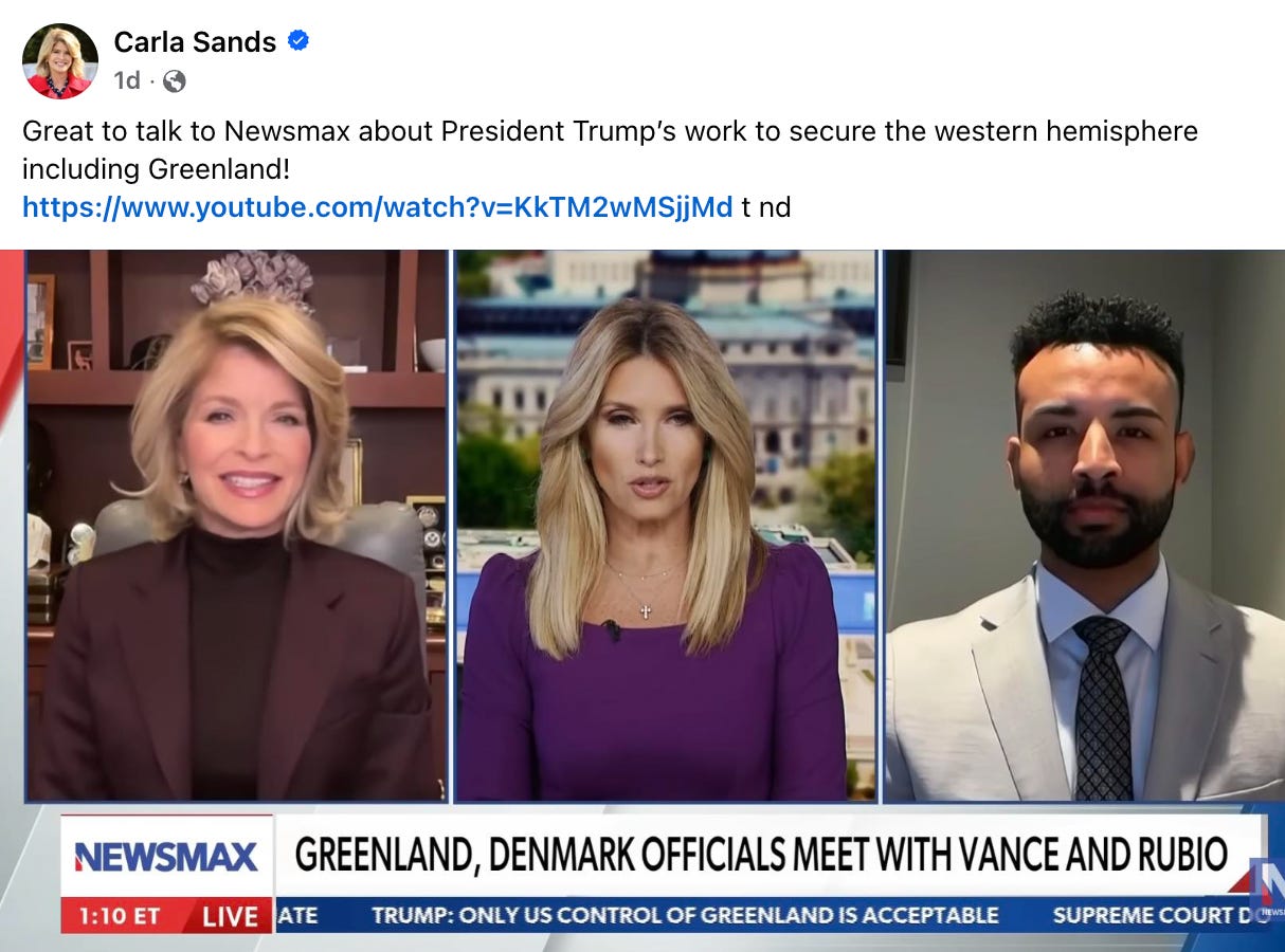 Carla Sands has moved on to other things since leaving her role as U.S. ambassador to Greenland. Such as promoting Trump’s push into Greenland.